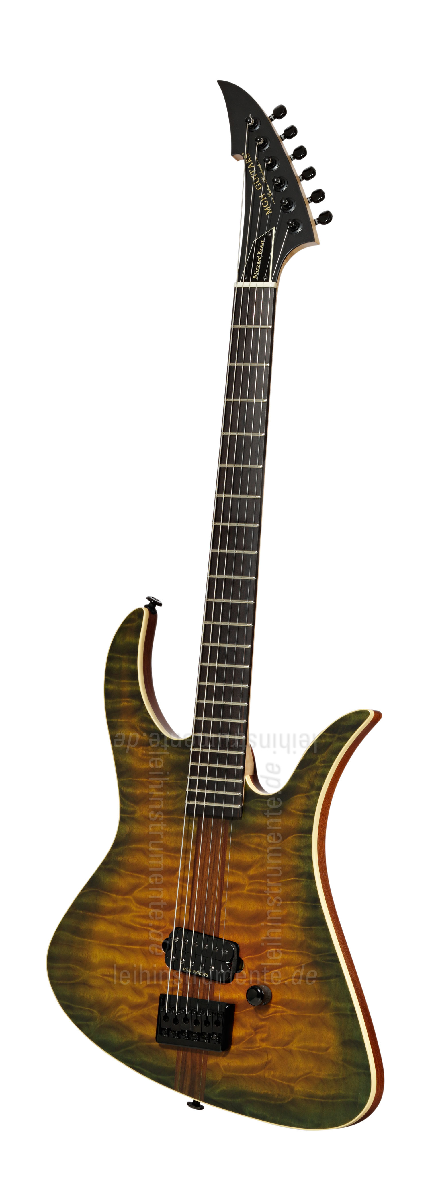 E-Gitarre MGH GUITARS Blizzard Beast Deluxe - green amber burst + Softcase - made in Germany